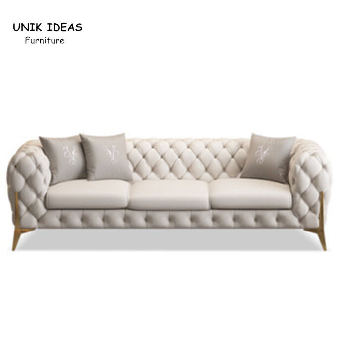 Living Room Sofa, couches for small spaces, it is not cold wood, it has its own soul. Bring endless elegance, visible quality and comfortable design to the plain space. Manual pull button design, provide comfortable massage function, create concave convex texture shape, improve the sense of space level. Atmospheric modeling, full sitting feeling, increase the contact area, reduce the pressure limit, so as to relax the contact part. The sofa cushion is filled with multi-layer high-density and high rebound sponge, which is close to the buttocks and supports the legs, so that you can sit comfortably. Gold stainless steel sofa feet, unique shape, durable.