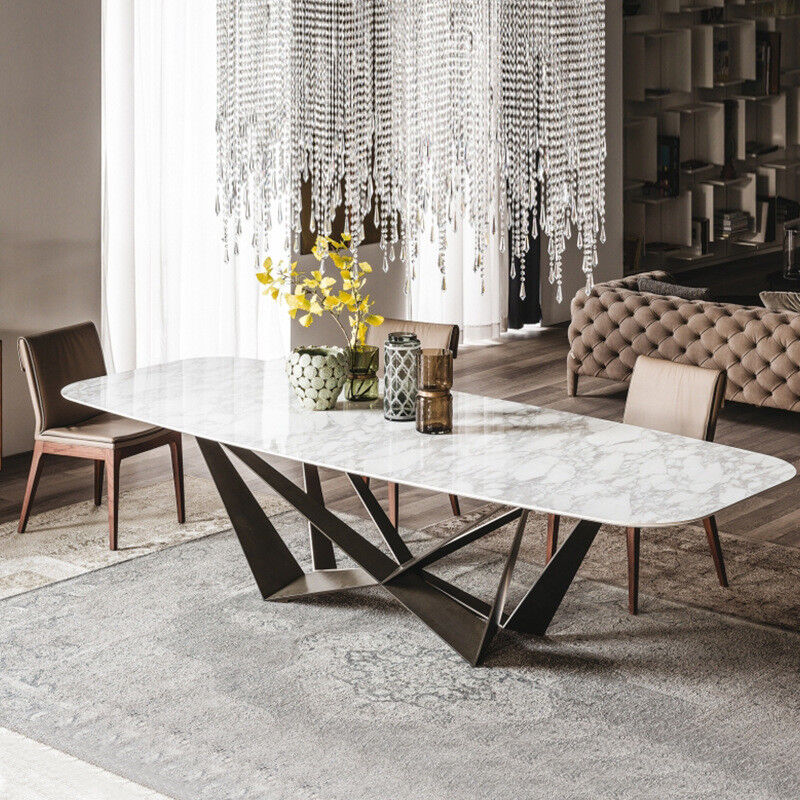 Luxury Dining Room Stone Marble Top Dining Table With Leather Chairs