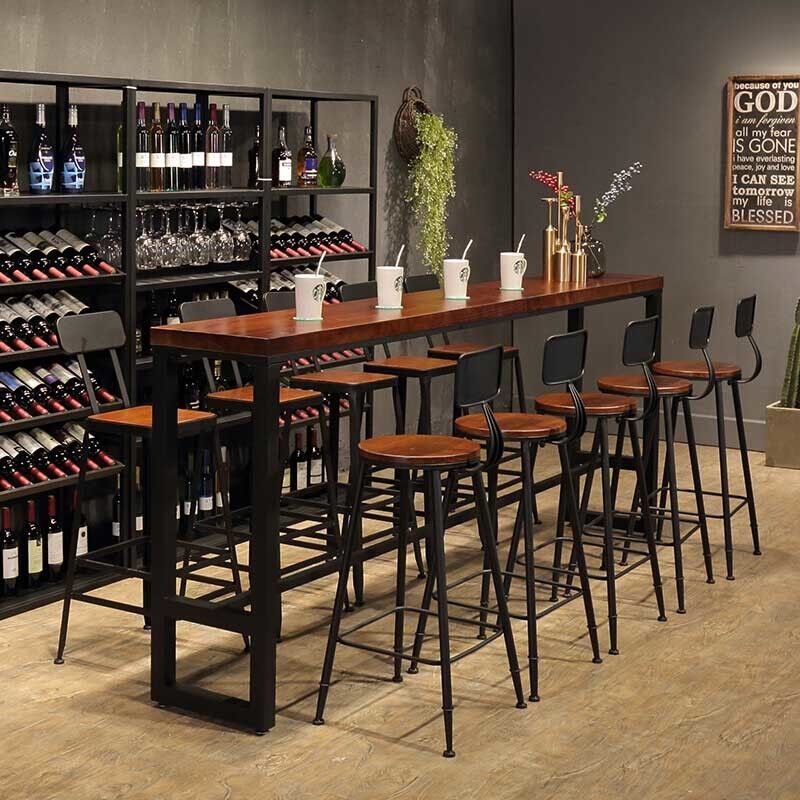 Wood Coffee Cafe High Stool Table Modern Bar Counter Table Set