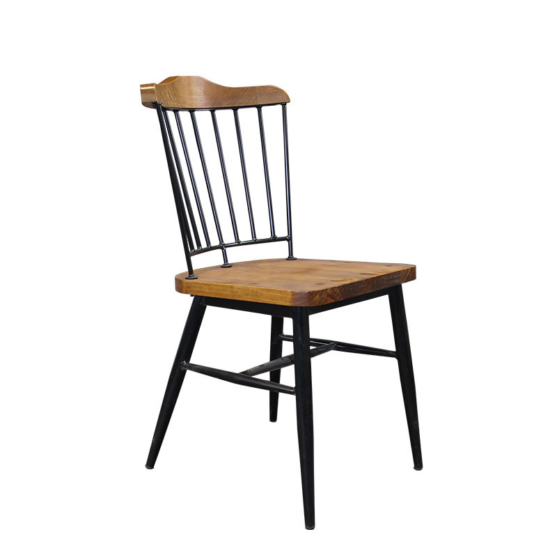 Retro Solid Wood Dining Chair High Back Metal Restaurant Bar Chair