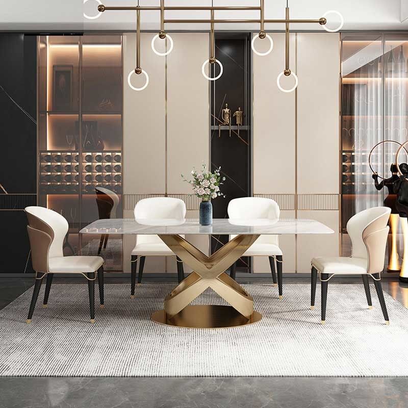 Slate Rectangular Luxury Dining Table And Chairs Home Furniture