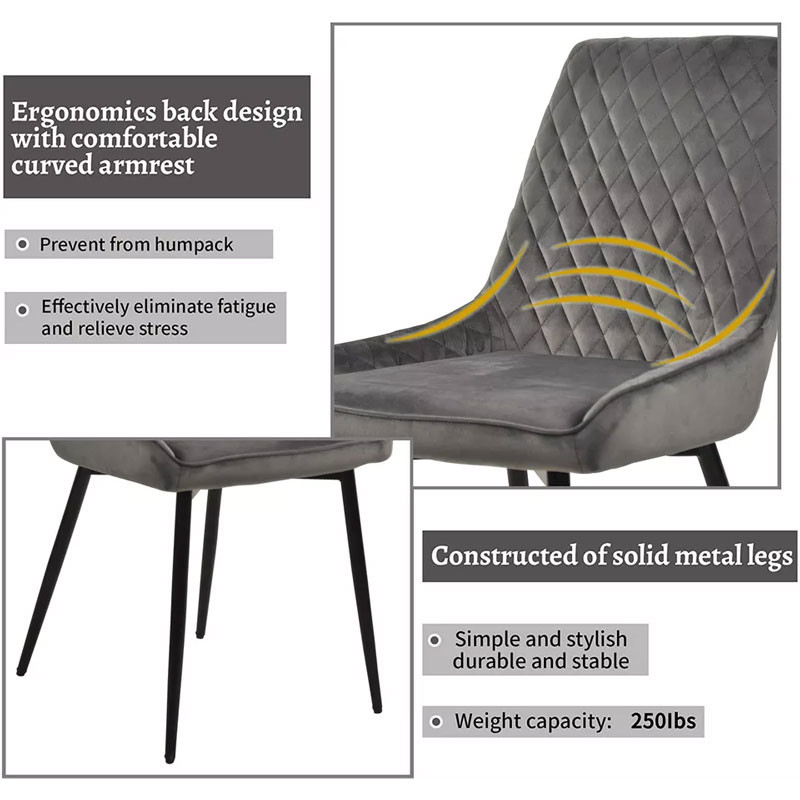 | Seat & Back Material: | Fabric Velvet/Leather | Legs Material: | Metal Tube |
