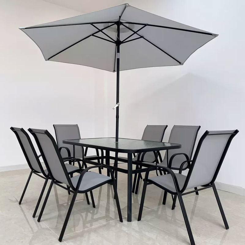 ● Tempered glass table top,with umbrella hole