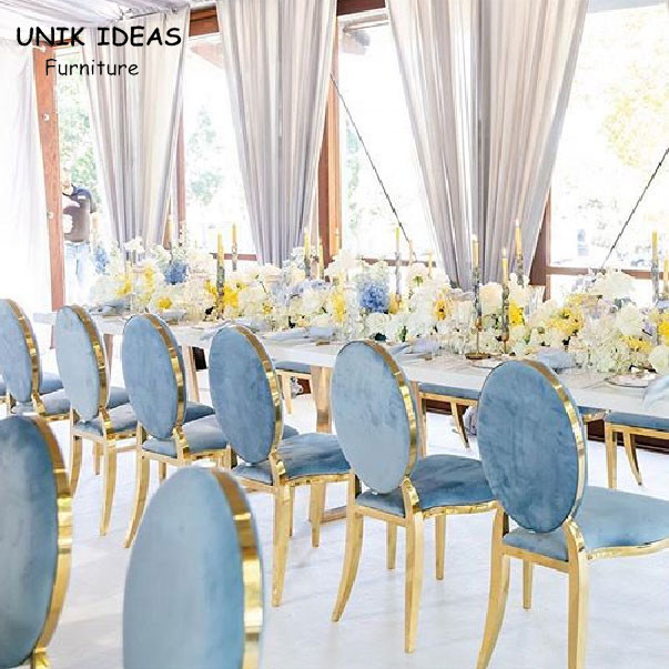 Blue Velvet Gold Rim Chairs For Party Event Wedding Royal Banquet Set
